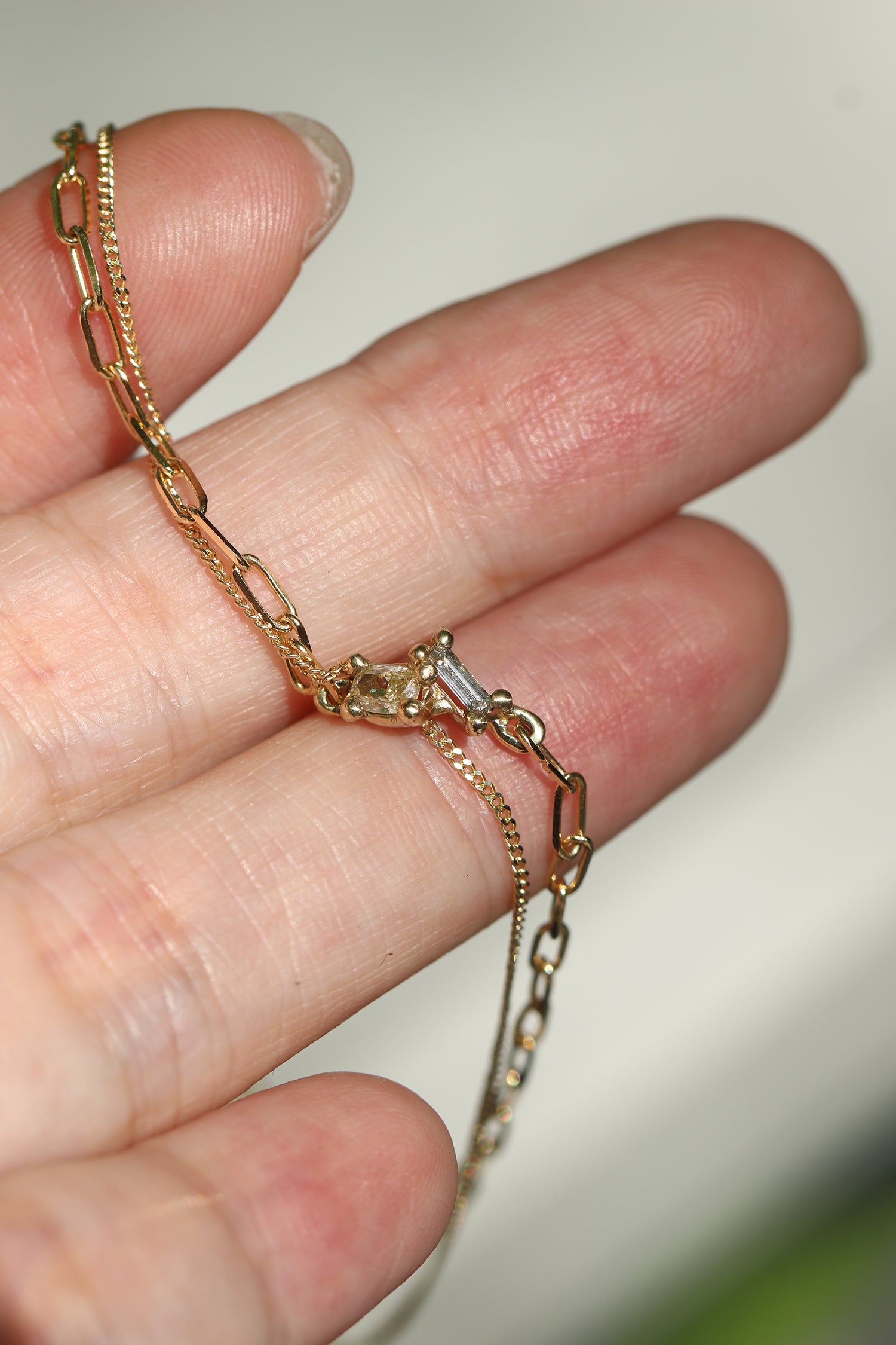 Duo Stone Charm with Double Chain Bracelet