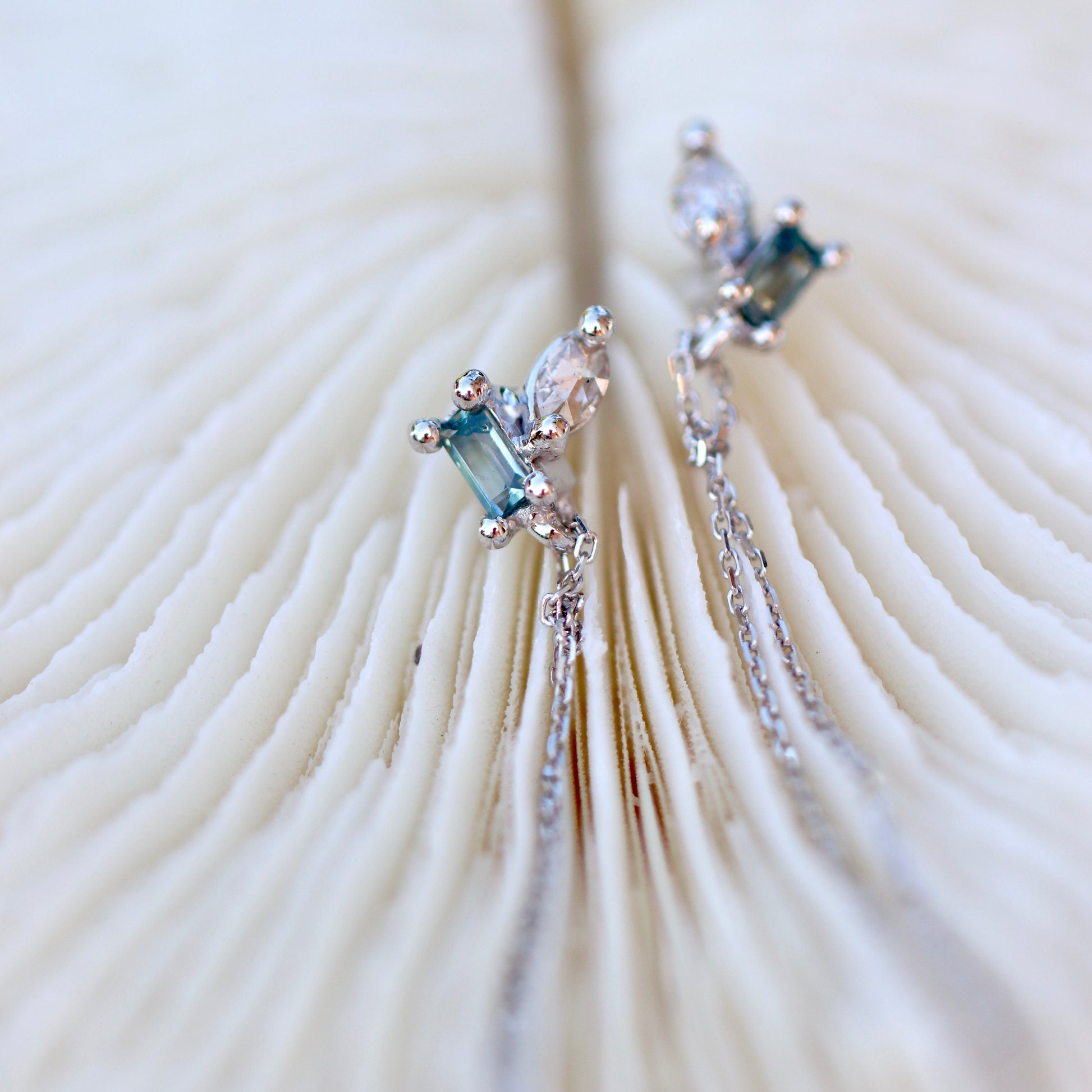 Asymmetric Duo with Swinging Chain Earrings (Sapphire and Diamond)